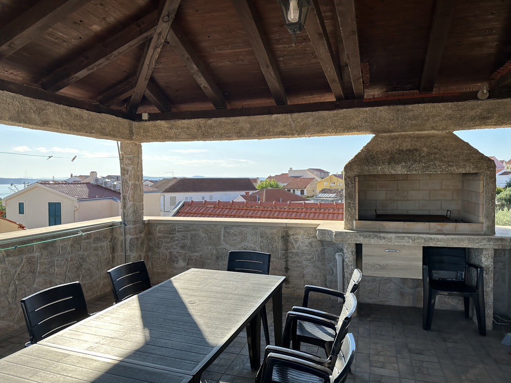 100 m² nagyságú, kétszintes, nappali, 2 hálószoba, fürdőszoba, a nappaliban kihúzható kétszemélyes kanapéágy, így akár 6 főnek is alkalmas. A konyha és az étkező a harmadik emeleten található, melyhez kapcsolódik egy hatalmas, fedett tetőterasz grillel, ahol akár 14 fő is kényelmesen elfér. Az apartman felszerelt konyhasarokkal, étkezőasztallal, síkképernyős TV-vel és WIFI-vel. A konyhában található hűtő-fagyasztószekrény , főzőlap, kenyérpirító, mikró és kávéfőző is.